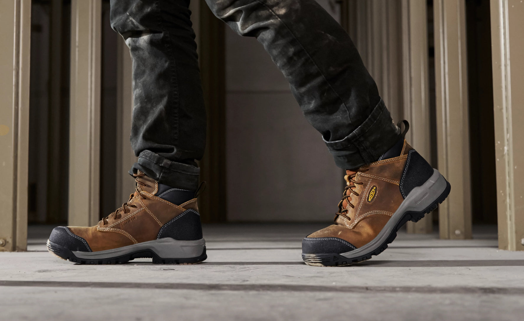 Protects like a work boot and feels like a sneaker. This versatile men’s ESD style features a tough leather upper and energy-returning cushioning.