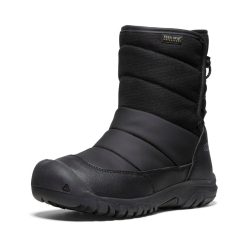The kids’ snow boot that feels like a sleeping bag. Soft. waterproof. toasty. and so easy to get on & off with a bungee-cinch opening in back.