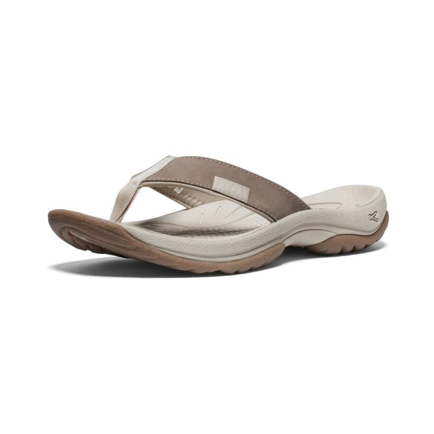 The ultimate travel flip. With more cushioning. arch support. traction for wet surfaces. and ethically sourced. waterproof leather.